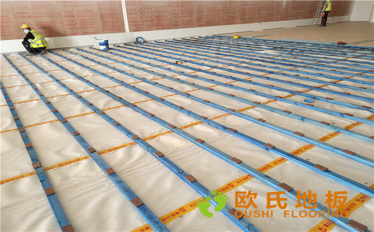 北京环球影城篮球馆运动木地板案例,项目案例使用欧氏地板篮球馆专用单层龙骨结构运动地板,施工面积344平米。